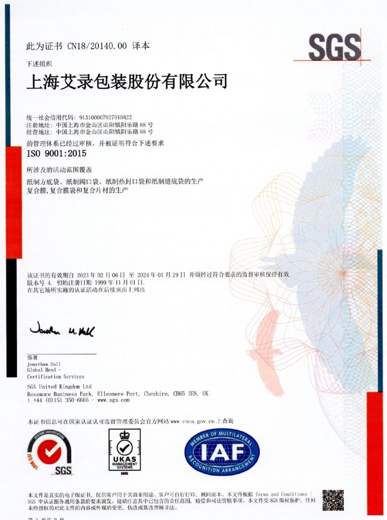 上海艾錄包裝股份有限公司(證券簡稱:上海艾錄 證券代碼:301062)成立于2006年,主要從事工業(yè)用紙包裝、塑料包裝及智能包裝系統(tǒng)的研發(fā)、設計、生產、銷售以及服務。經(jīng)過多年的持續(xù)發(fā)展,公司已由國內領先的工業(yè)用紙包裝公司,成長為一家工業(yè)與消費包裝產品皆備的軟體包裝一體化解決方案提供商,并通過智能化、柔性化、定制化的生產能力,為妙可藍多、蒙牛、光明、雀巢、菲仕蘭、 陶氏、巴斯夫、沈陽化工、佰利聯(lián)、德高、立邦、東方雨虹、美巢等國內外知名工業(yè)及消費類企業(yè)客戶提供包裝解決方案所需的相關產品。